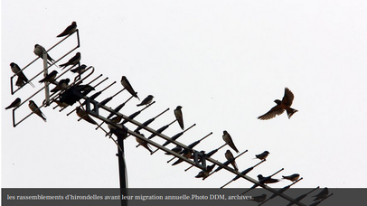 Depuis quelques jours, les hirondelles virevoltent dans le ciel. À cette saison, elles préparent leur départ. L'hirondelle migre en groupe. Après une traversée de l'Espagne, de la Méditerranée, puis de l'Afrique du Nord, elle passera au Soudan, jusqu'en Afrique du Sud. Elle parcourt au moins 10 000 km en deux mois. Au printemps prochain, elle reviendra, en reprenant le chemin inverse. Un rituel immuable. Lorsqu'elle revient d'Afrique, l'hirondelle retrouve, comme bien d'autres migrateurs, le lieu où elle nichait l'année précédente. Cela explique peut-être qu'elle ne recolonise que difficilement les villes d'où elle a disparu, même quand les conditions de pollution ou de menaces qui pèsent sur elle semblent avoir diminué.